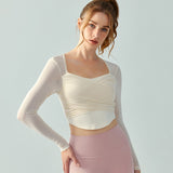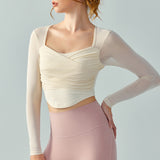 Resa Sport Top 網紗抽皺美胸長袖【象牙白】4色